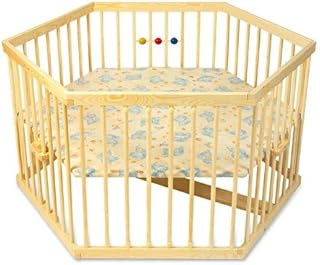 Kidsmax Laufgitter Laufstall Sahra 6-Eck klar lackiert inkl. Polsterboden, Schlupfsprossen, Höhenverstellung und Rollen