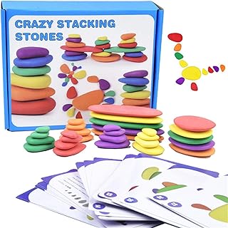 Kobay Balanciersteine Holz Stapeln Spielzeug,farbige Holzsteine,Montessori Holzspielzeug Farbiger Meditations Balancier Stein,Bildung Holzbausteine Set,Stapeln Lernspielzeug für Kinder