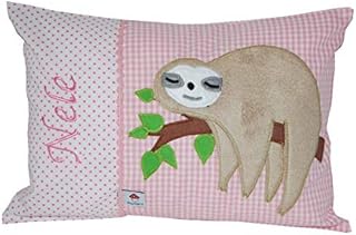 Glückspilz Namenskissen Babykissen I Faultier I mit Namen personalisiert I Geschenk zu Geburt, Taufe oder Geburtstag (Rosa, 40 x 60) (Rosa, 30 x 45)