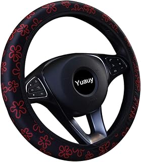 Yuauy Lenkradbezug im Naturstil, Mikrofaser, Leder, rutschfest, universal, Lenkradbezug aus Kunstleder für Autozubehör, ohne Innenring (5-Sterne-Blume Rot)