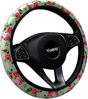 Yuauy Lenkradbezug im Rosen-Stil, Mikrofaser-Leder, rutschfest, universal, Lenkradbezug aus Kunstleder für Autozubehör, ohne Innenring (rosa-grün)