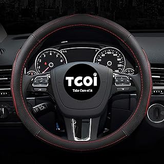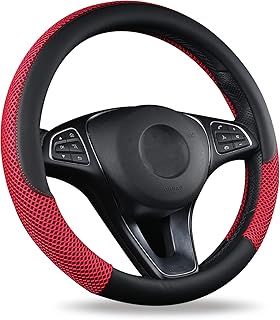 TCOI Lenkradbezug aus Mikrofaser-Leder, universelle Passform, 37–39 cm, atmungsaktiv, rutschfest, Schwarz und Rot