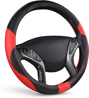 Mousyee Lenkradabdeckung, Auto Lenkradhülle 38CM Kohlefaser Universal Fit Leder Autolenkradabdeckung Weich Geruchlos Komfortabel Langlebig Atmungsaktiv Rutschfest für Autos (Rot)