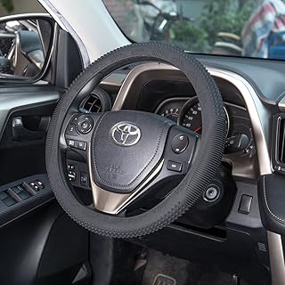 FMS Silikon Lenkradhülle 33-46cm Universal Lenkradabdeckung Auto Lenkradbezug, Langlebig, Atmungsaktiv, Anti-Rutsch, Geruchlos (Schwarz)