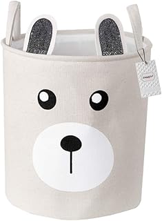 Inwagui Kinder Wäschekorb Wäschesammler Baby Spielzeug Aufbewahrungskorb Faltbare Stoff Runde Haushalt Organizer Korb mit Griffen - Grau Bär