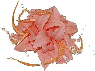Fascinator mit Clip aus mehrlagigem Stoff mit Blumen, Federn und Perle, pfirsichfarben, rosafarben, cremefarben oder korallenfarben, für Hochzeiten und Pferderennen