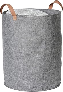 LOVE !T STORE !T – PREMIUM Rundkorb mit Griffen – freistehender Aufbewahrungskorb aus Leinen Stoff – Wäschekorb Bad – 40x40x50cm – grau - 676645