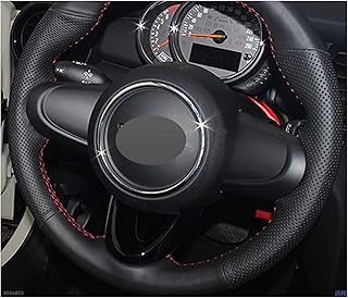 Lenkradbezug aus schwarzem Kunstleder, handgenäht, passend für Mini Cooper Coupe, Clubman, Countryman 2014–2019 (gelbes Gewinde)