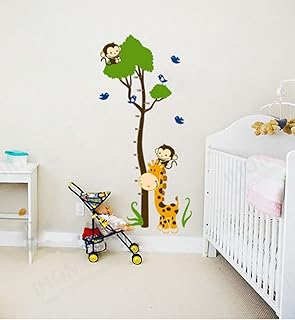ufengke® Grünen Baum Niedlichen Affen Giraffe Vögel Messlatten Wandsticker, Kinderzimmer Babyzimmer Entfernbare Wandtattoos Wandbilder