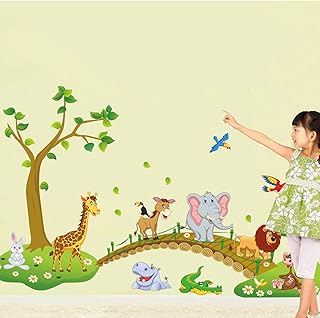ufengke® Grünen Baum Niedlichen Löwen Kaninchen Giraffe Elefanten Überqueren Der Brücke Wandsticker, Kinderzimmer Babyzimmer Entfernbare Wandtattoos Wandbilder