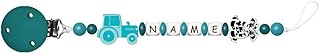 Baby Schnullerkette mit Perlen aus Holz und Wunschname Traktor Fabian