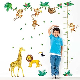 DECOWALL SG-2110 Dschungeltiere Höhendiagramm Kinder Wandaufkleber Abziehbilder Abziehen und Aufkleben Abnehmbar für Kinderzimmer Schlafzimmer Wohnzimmer Kunst Wandbilder Dekorationen