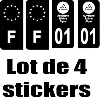 Safirmes 4 Sticker, Stil Auto, Nummernschild, Schwarz, Auvergne Rhone Alpes 01