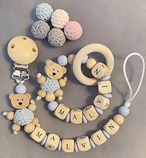 Amazon.de: Alles für das Baby - Schnullerkette mit Namen Teddy Bär HäkelperleNatur Holz Mint & Grau Mädchen & Junge. Gratis Lieferung ab 29€ durch Amazon. Ab 35 € einkaufen - Nur 1,99 € Versand bezahlen! Deine Schnullireich Schnullerkette mit Namen passt für Deinen Namensschnuller mit oder ohne Ring (z.B. MAM, NUK oder AVENT). Hochwertig geprägte Holzbuchstaben und individuelle Bestickung bei unserem Schnullerband mit Namen aus Stoff mit Zufriedenheitsgarantie.