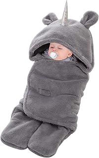 Obestseller Baby Neugeborene Schlafsack mit Füßen Baby Decke Plüsch Wickeldecke mit Kapuze Universal Schlummersack für Säuglinge Babys Neugeborene 0-12 Monate Wrap Decke Wickel Einschlagdecke