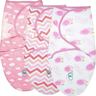 Baby Wickeldecke für Neugeborene & Säuglinge, 0-3 Monate, 100% atmungsaktive Baumwolle, Pucksack mit verstellbaren Flügeln, 3 Stück Einschlagdecken für Mädchen (Rose)