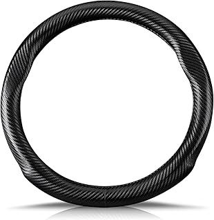Ergocar Kohlefasermaterial lenkradbezug Stilvolle Atmungsaktive Anti Rutsch Schweißabsorbierende lenkradbezug für runde Form mit einem Durchmesser von 15"(37,5-38cm)-Schwarz