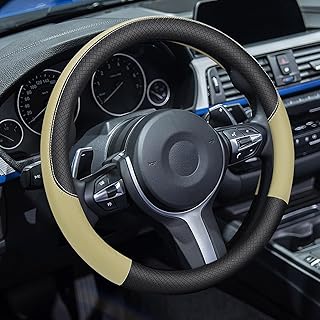 Lenkradbezug Auto Lenkradhülle Lederabdeckung für das Lenkrad passt für die meisten Lenkräder PU Leder Geruchlos Anti Rutsch Stilvoll Patchwork Lenkradbezug 37-38cm Schwarz beige Lenkradhüllen